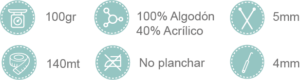 La Lana KOTONY de Silvia está compuesta por 60% algodón. Es una lana muy versátil y una de las pocas con alto % de algodón de la mejor calidad.