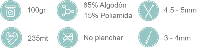 Lana compuesta por mezcla de fibra acrílica y poliamida, torcida en dos cabos y teñida en color entero. Antialérgica.